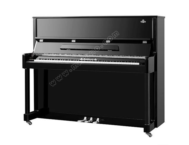 德國進口音板(并配有音板保證卡)、R?slau(羅斯勞)琴弦 、德國ABEL擊弦槌、烏木黑鍵(觸鍵更加靈巧敏捷、舒適,耐久經用)、五根柱寬背架,保證音質的優美與穩定性
